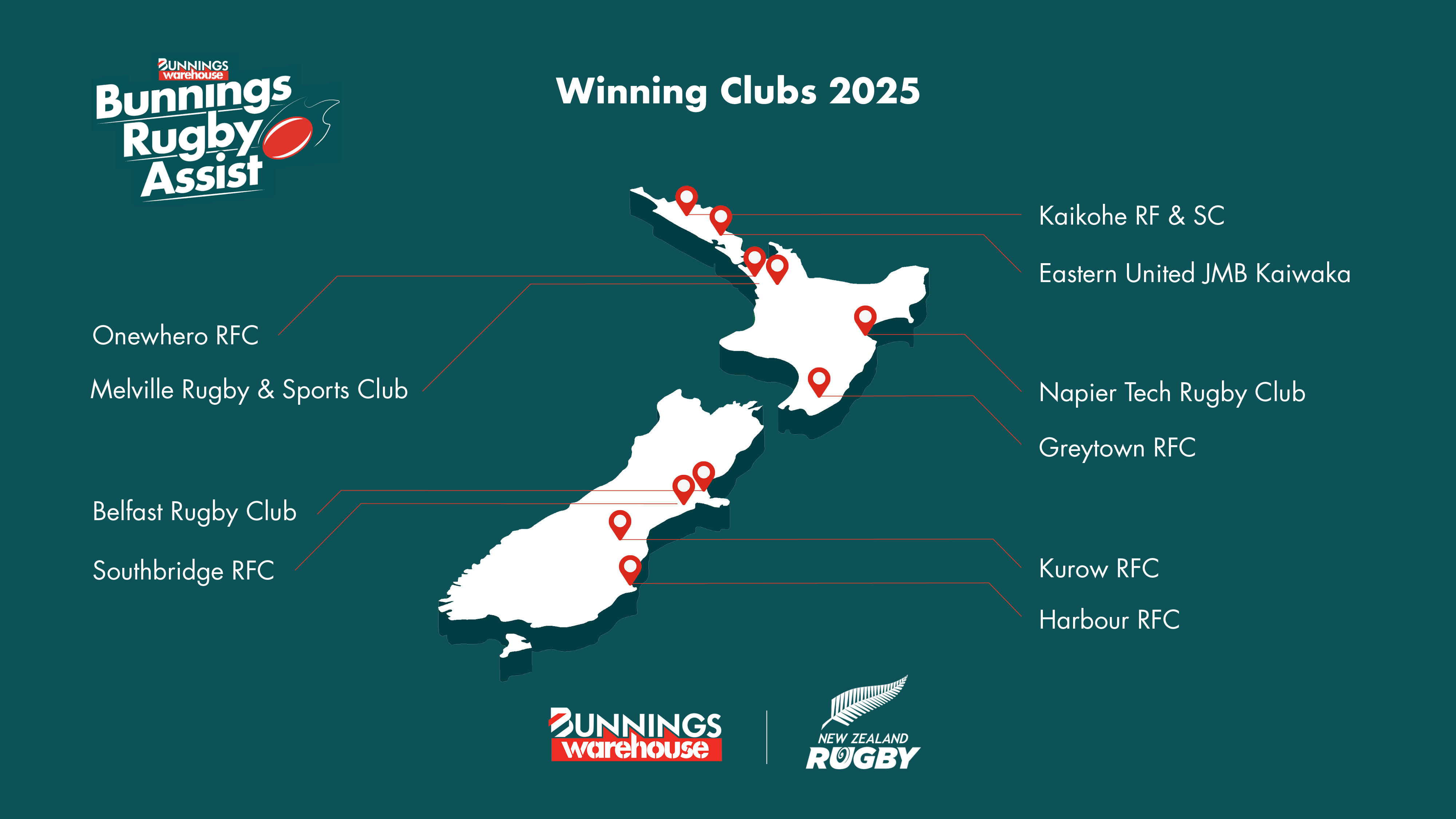 Each club will receive $30,000 of Bunnings products and materials to improve their club. As a partner of provincial rugby in New Zealand, we’re grateful for Bunnings support of grassroots rugby through Bunnings Rugby Assist.