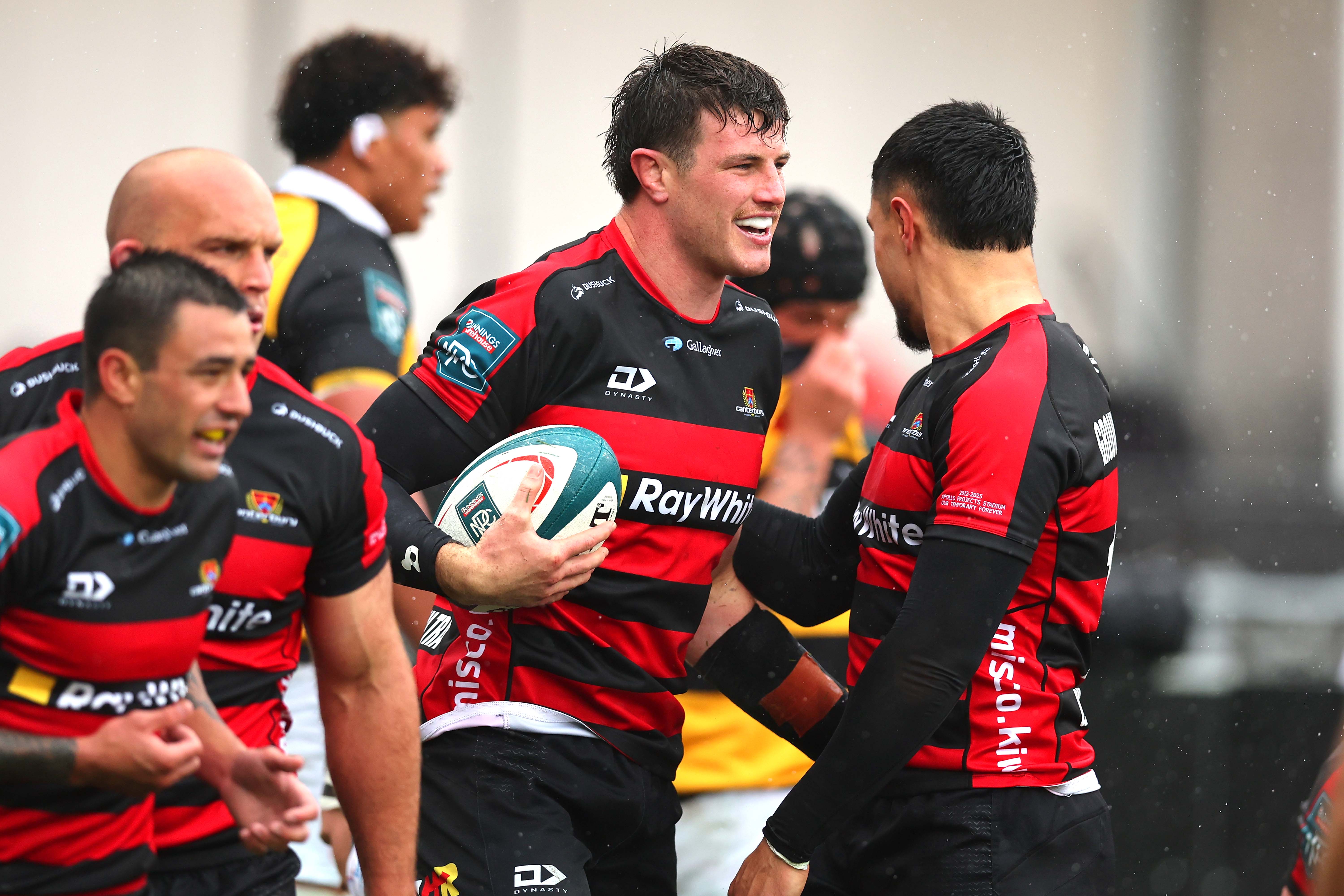 Canterbury utilised wet-weather rugby in its quest to finish in top place when hosting Taranaki in Christchurch. The game was five minutes old when flanker Zach Gallagher blasted over on the blindside of a goal-line ruck. Then, in the 18th minute, first five-eighths Andrew Knewstubb's 50:22 set up a chance from a midfield ruck, where he fed fullback Chay Fihaki in for their second try. Taranaki used their lineout to set up a chance from halfway after 25 minutes. When play stopped for a midfield ruck, the ball was cleared for No8 Kaylum Boshier to feed centre Daniel Rona in a strong downfield before passing out to wing Adam Lennox, who cut back in to beat the defence and score. But that merely poked the Canterbury bear, and after a kick to the Taranaki line by second five-eighths Dallas McLeod, the home forwards went to work with Gallagher crossing for his second. Two seconds before halftime was called, outstanding Canterbury support play saw Gallagher complete his first-half hat-trick of tries.